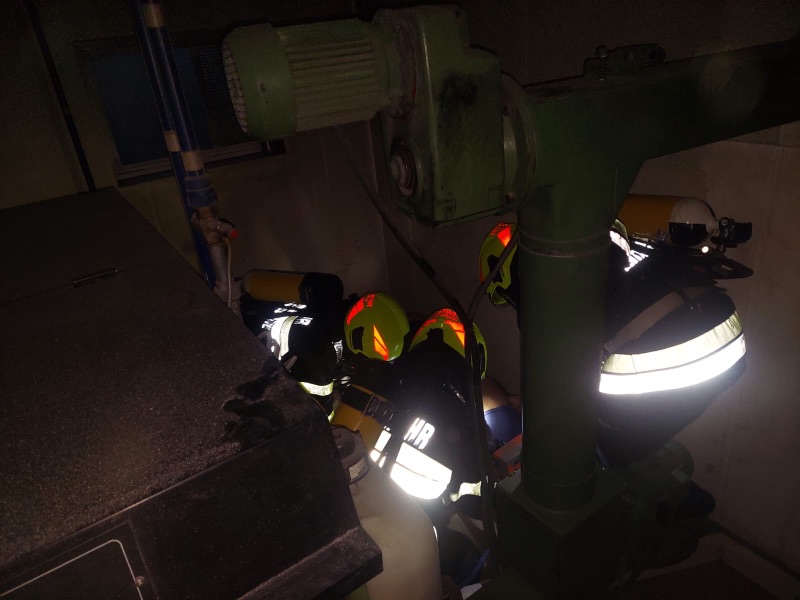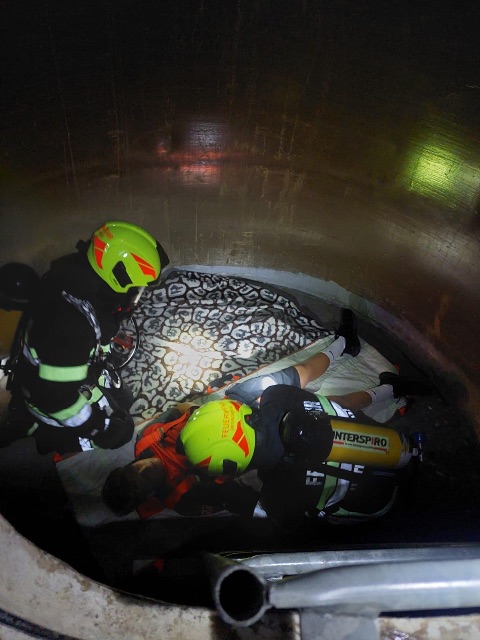 Während ein Atemschutztrupp eine verletzte Person aus dem Dachboden rettete, musste der zweite Trupp Personen aus einem Silo und aus einem Heizraum befreien.