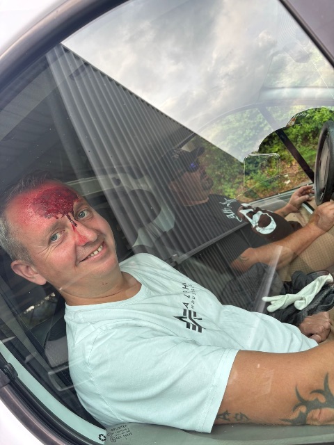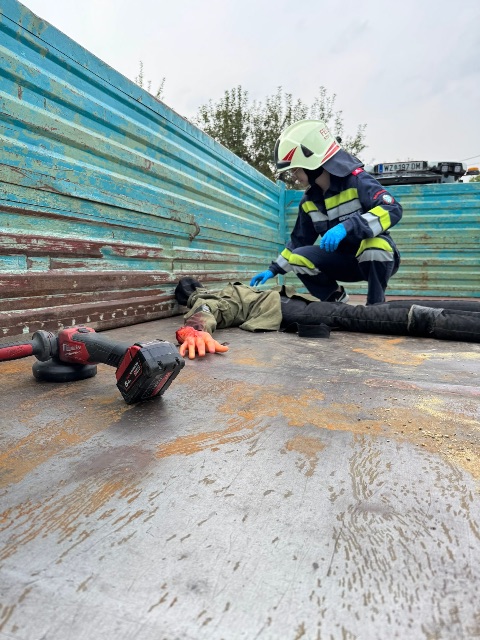 Bei diesem Szenario mussten zwei verletzte Personen aus einem Fahrzeug gerettet werden. Die Motorradfahrerin war unter ihrem Motorrad eingeklemmt. Zusätzlich klagte sie über starke Rückenschmerzen, sodass die Feuerwehren von einer schweren Wirbelsäulenverletzung ausgehen mussten.