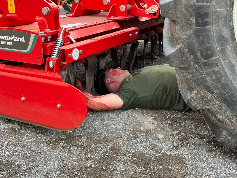 Bei der zweiten Station mussten die Feuerwehren eine Person retten, die unter einem landwirtschaftlichen Gerät eingeklemmt war. Eine zweite Person hatte sich bei einem Arbeitsunfall die Hand abgetrennt. Sie wurde mittels Crashrettung vom Anhänger geholt und anschließend versorgt.