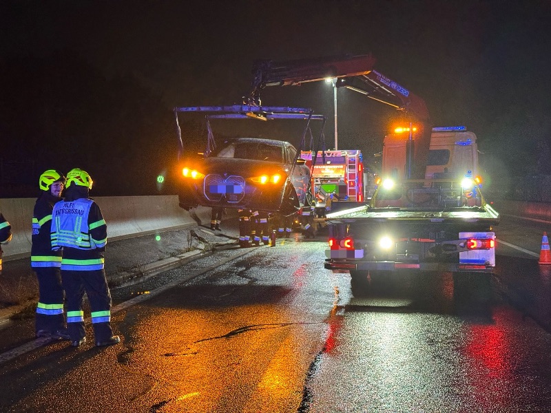 Aus bislang ungeklärter Ursache krachte ein Lenker mit seinem Fahrzeug gegen die Leitwand und kam anschließend auf der ersten Fahrspur zum Stillstand.