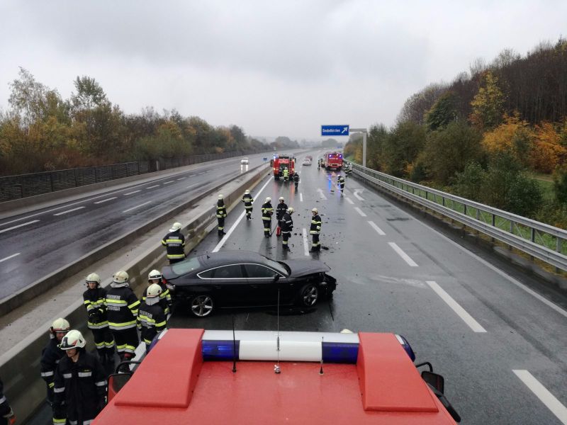 Am 22. Oktober wurden wir mittels Sirene und SMS zu einem Verkehrsunfall auf der A2 alarmiert. Aus ungeklärter Ursache kollidierten zwei PKW auf regennasser Straße ineinander. Dabei wurde eine Person unbestimmten Grades verletzt.