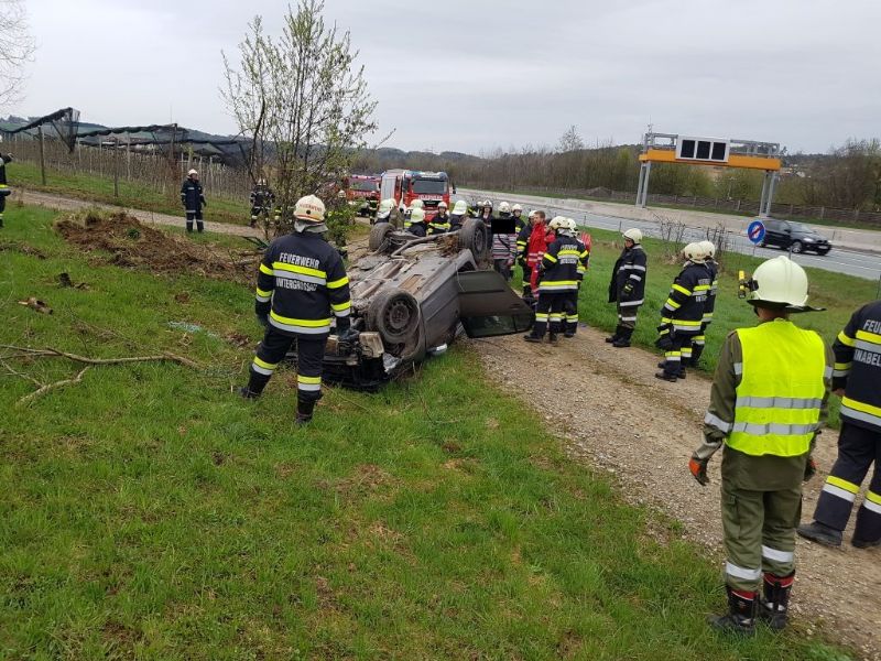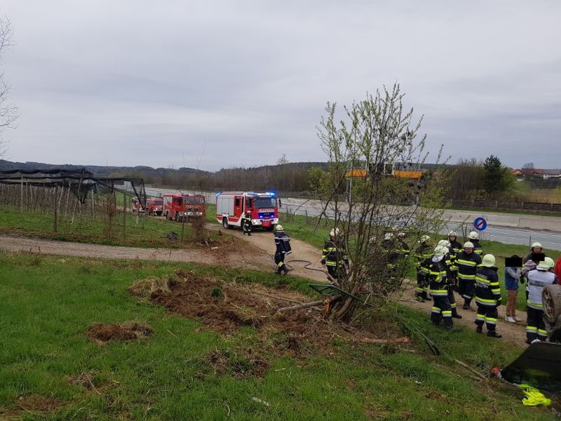 Am 15. April 2018 kam es zu einem schweren Verkehrsunfall auf der A2. Aus ungeklärter Ursache verlor der Lenker eines PKW die Kontrolle über sein Fahrzeug, durchstieß den Zaun auf der Autobahn und den einer Obstanlage und kam dann auf dem Dach des Fahrzeuges zum liegen.