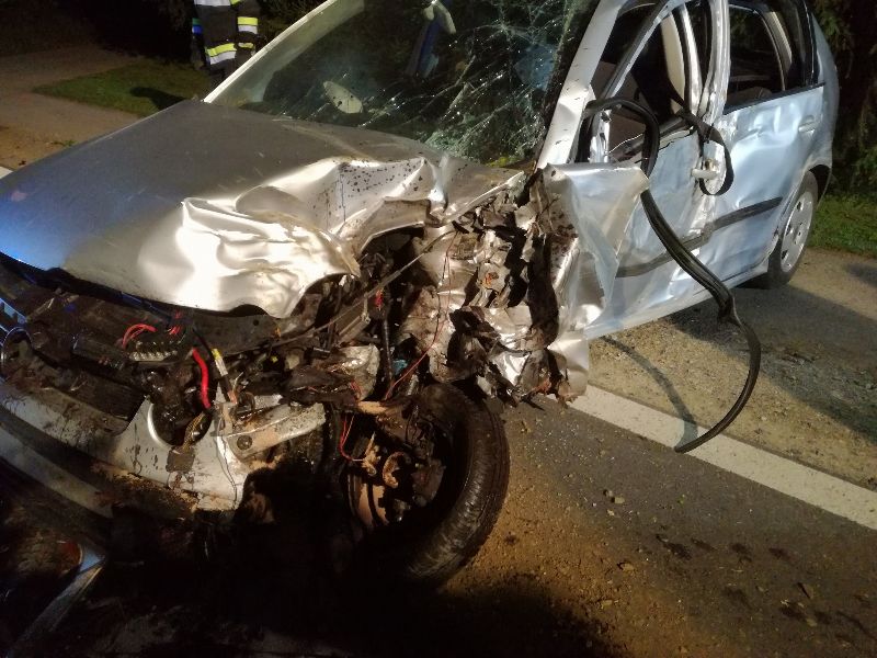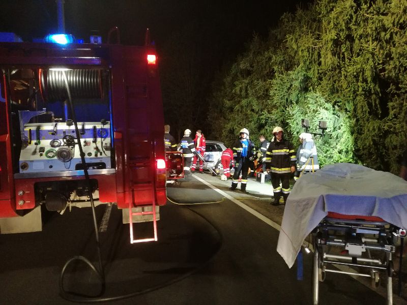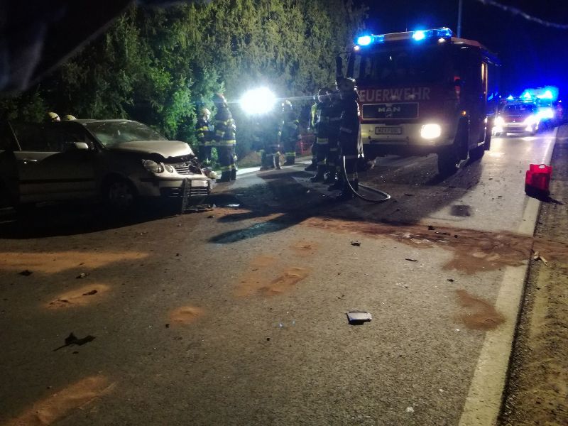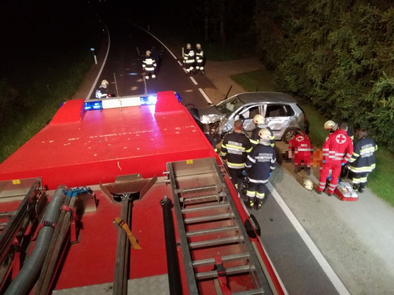 Aus ungeklärter Ursache kam ein PKW-Lenker links von der Straße ab, krachte in einen Baum und kam auf der Fahrbahn zu stehen.