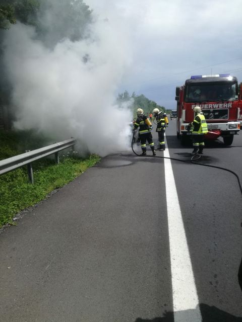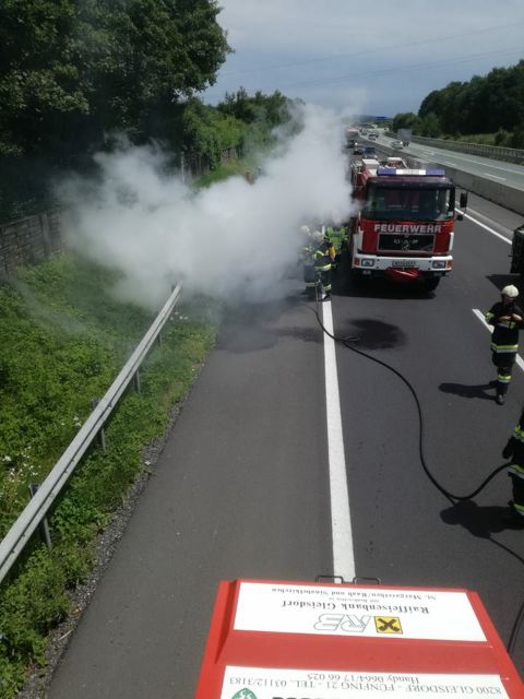 Am 22. Juni 2018 wurden wir mittels Sirene und SMS zu einem Fahrzeugbrand auf der A2 FR Klagenfurt alarmiert.